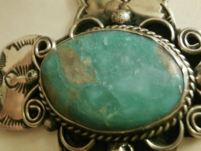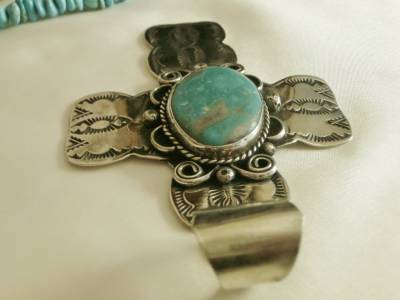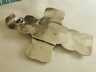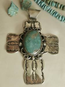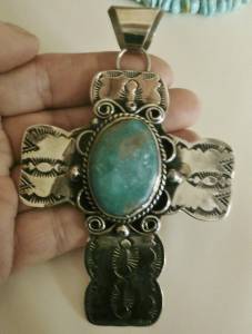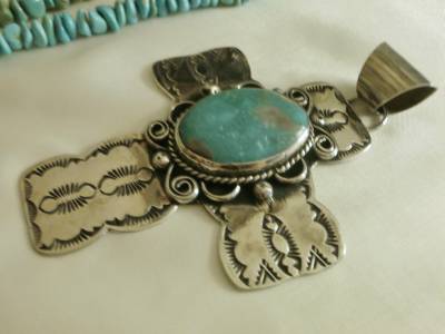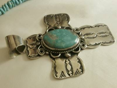 BIG 4&1/4"Long NAVAJO Albert Cleveland KINGMAN TURQUOISE CROSS PENDANT