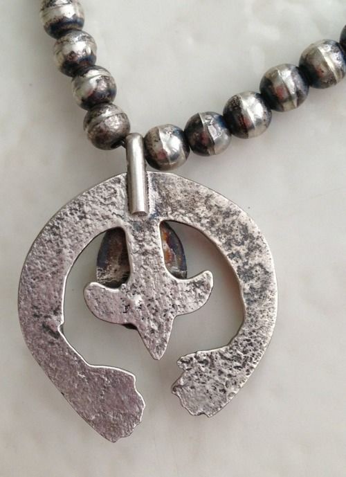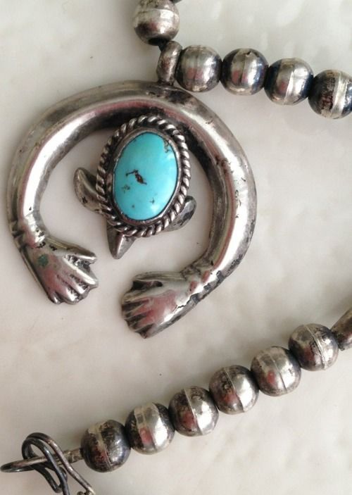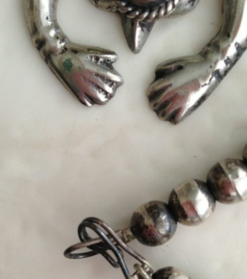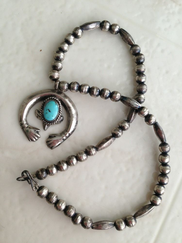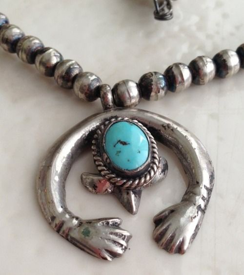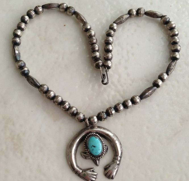 Vintage Navajo- Mexican Pawn Sterling Hand Made HandsTurquoise Necklace