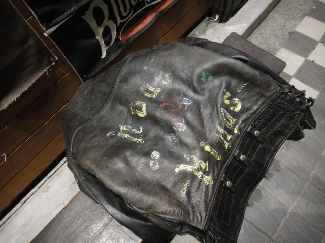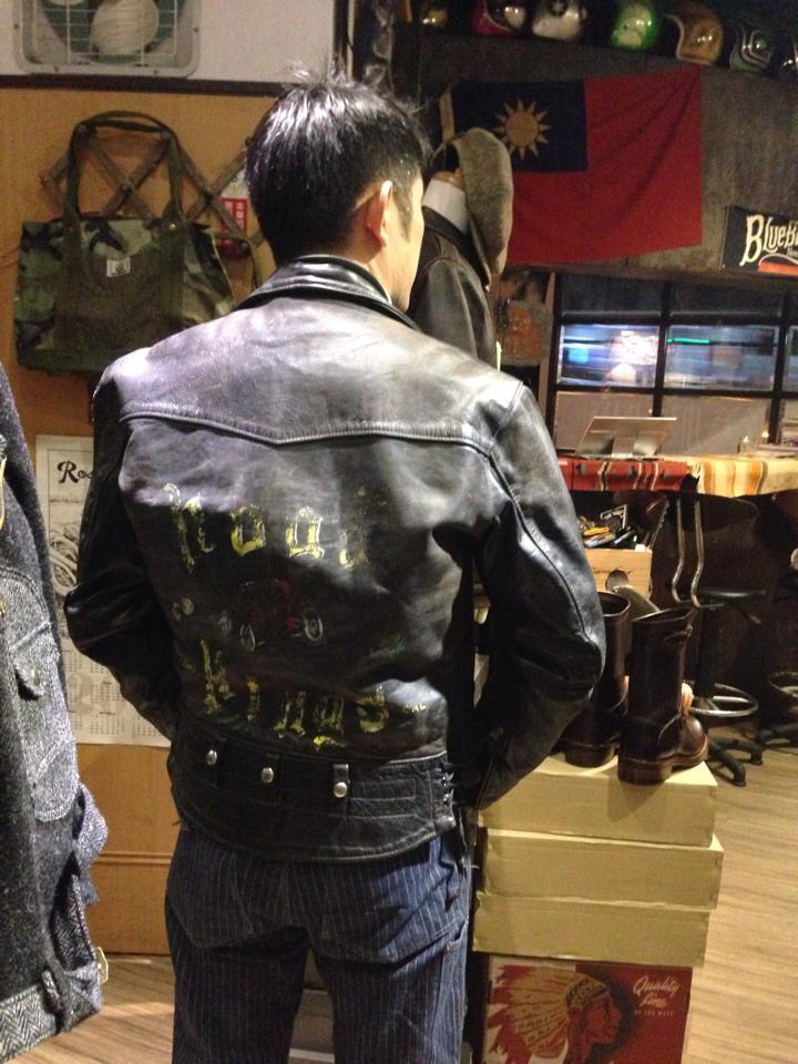 Langlitz 1950 green label POLICE model Columbia motorcycle jacket (w/ custom "Road King MC" paint)