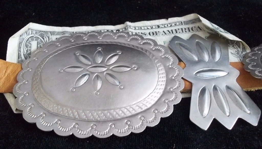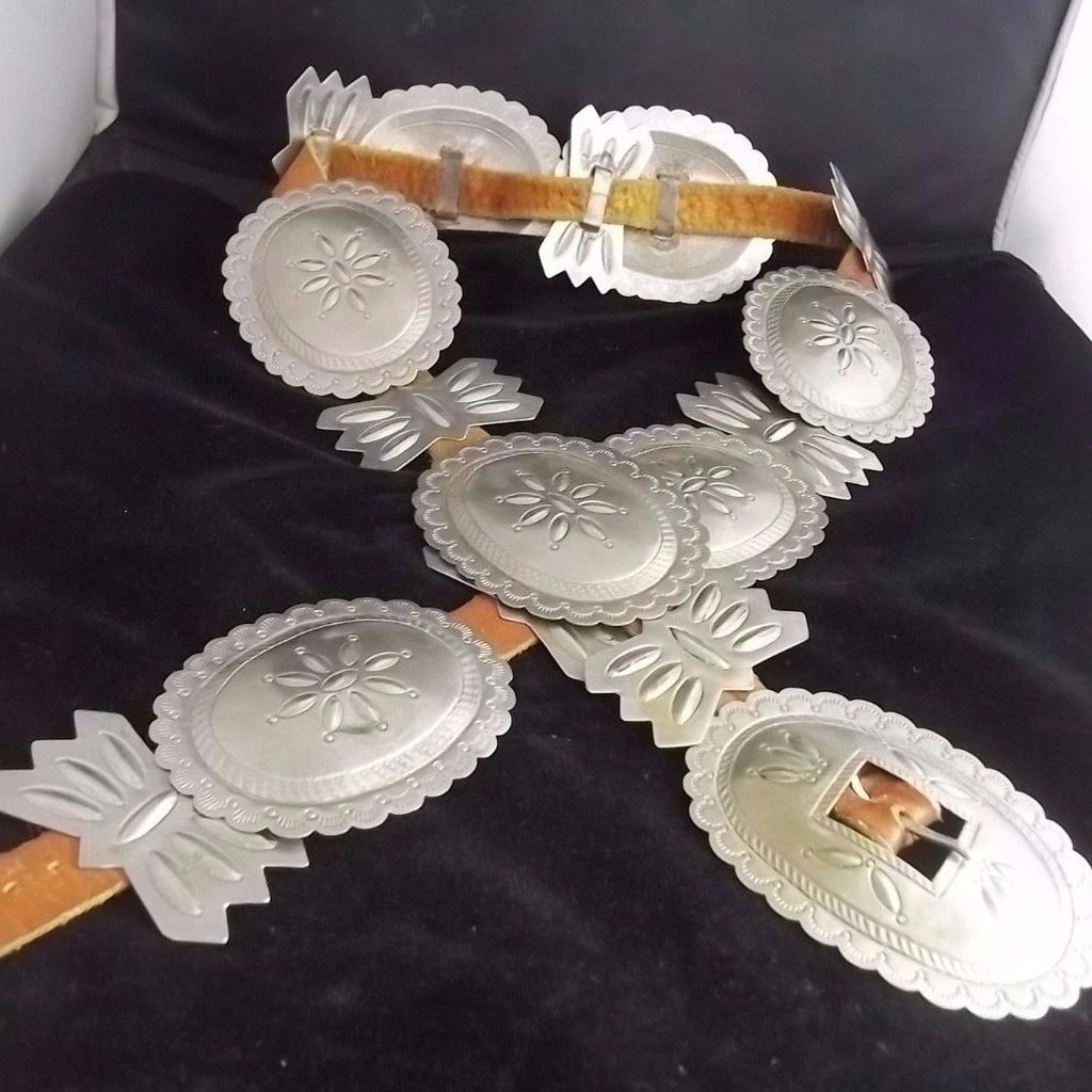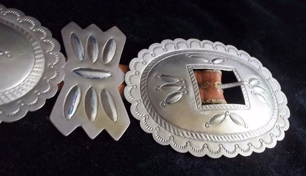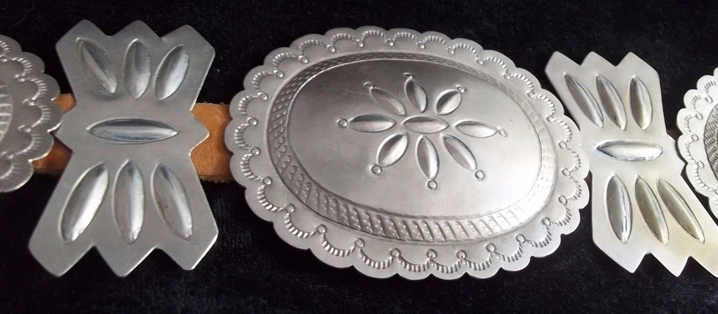 Vintage Navajo Silver Stamped Designs Concho Belt